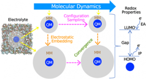 - In this recent study, “Predicting Electrolyte Redox Potential Trends through Long-Range Electrostatics and Configuration Ensembles: Insights from MD and QM/MM Simulations”, published in Journal of Chemical Theory and Computation (2025) https://doi.org/10.1021/acs.jctc.5c01297, Amreen Bano, together with the experimental and theoretical team, explored computationally the oxidative and reductive stability trends of electrolyte species. The work demonstrates, for the first time, how long-range electrostatics and configuration ensembles can be captured to predict realistic redox behavior. Computational insights revealed that while vertical ionization potential (IP) and electron affinity (EA) values correlate with HOMO–LUMO energies, structural relaxation of oxidized and reduced species weakens this correlation—particularly for organic carbonates upon reduction—underscoring the limitations of the simple HOMO–LUMO picture and the importance of accounting for geometric relaxation in redox predictions.